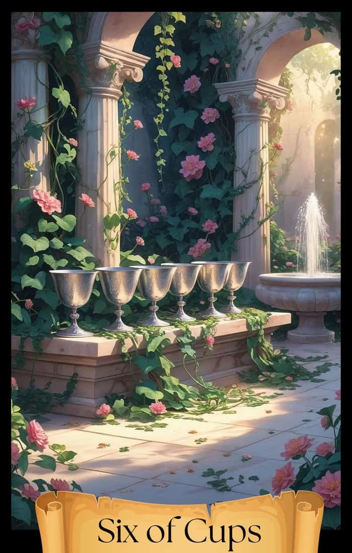 For Day 6, the tarot card that resonates most is The Six of Cups. This is the card of memory, nostalgia, and longing for what once was or what could have been. The Mirror of Erised is pure Six of Cups energy: Harry reaching toward a past he never got to have, a family he never knew, a childhood that was stolen from him. The card also speaks to innocence, emotional truth, and the ache of wanting something deeply but knowing it can’t be reclaimed.